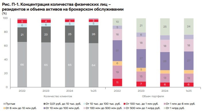 Физики бывают разные... Интересная табличка. Какой можно сделать из нее вывод? Всего открыто счетов на 36.3 млн лиц, из которых 90% с активами менее 10 тр или пустые. С этим разобрались. Значит большая часть из нас входит в те самые 10% от 25% всего населения РФ, у кого есть более 10 тр на счете. Из этих 10% половина всех средств сосредоточена в руках физиков с капиталом 100 млн+, а что самое интересное, их капитал за 3 года вырос в 2.5 раза и даже видно за счет кого - счетов до 6 млн руб. Картина очень хорошо отражает, как устроен рынок и что прибыль одного - это убыток другого. (в комменты скину более высокого качества) «Я предпочел бы получать доход от 1% усилий ста человек, чем от 100% своих собственных усилий» (Джон Дэвисон Рокфеллер)