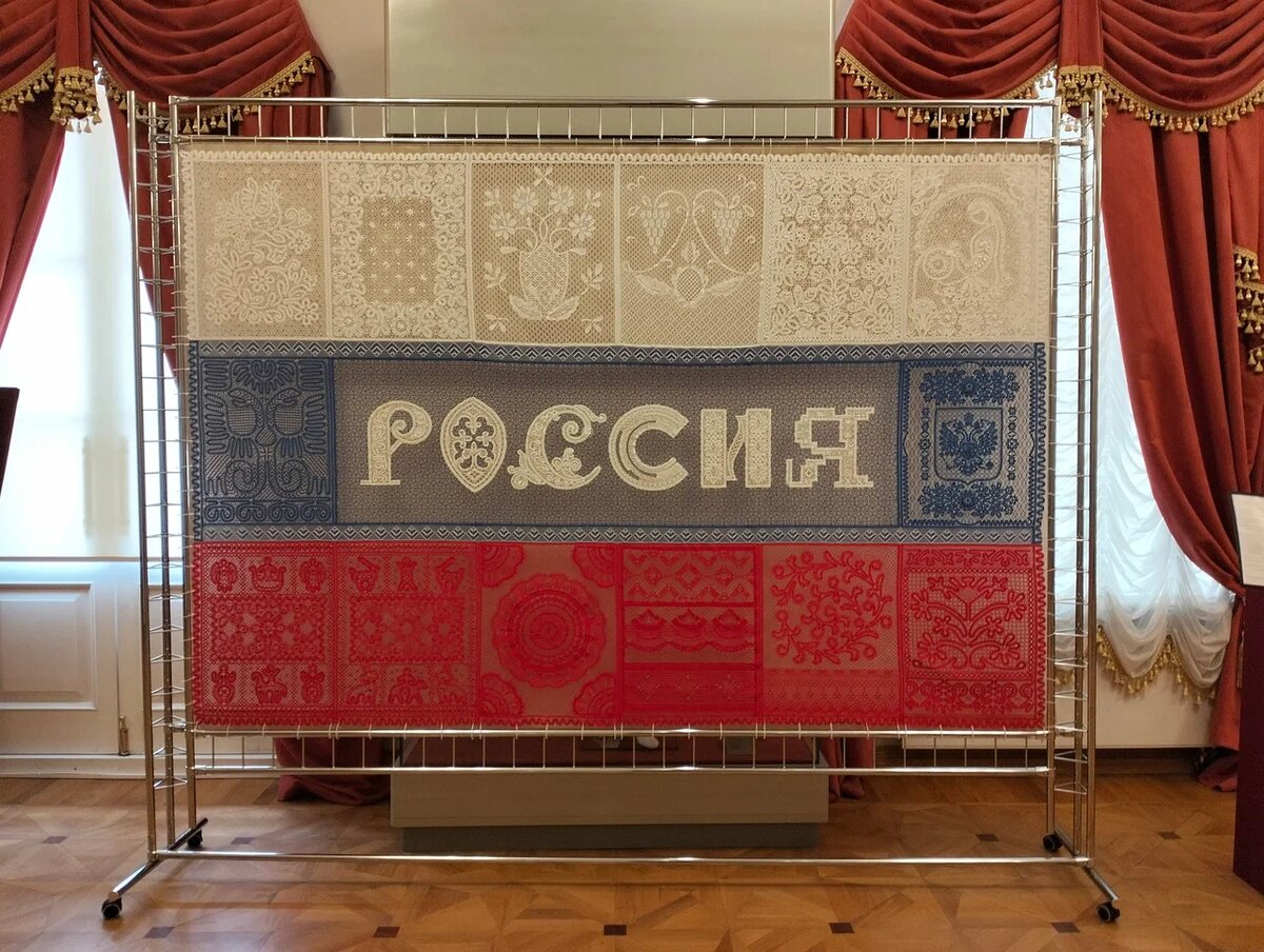 Особое место занимают экспонаты из фондов Вологодского музея-заповедника — многие вещи единственные в своём роде, например, салфетки с гербом России или огромные “панно” на всю стену.