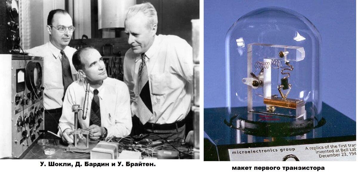 Вся история развития радиотехники- это прежде всего борьба за уменьшение размеров аппаратуры. Долгое время этому препятствовали габаритные и прожорливые радиолампы. Но даже в те времена были созданы первые прототипы микросхем. «Ламповая микросхема» звучит очень непривычно, но они активно выпускались и позволяли существенно экономить … на налогах. Об этом изобретении на канале «Полезные интересности» была статья. Если кто пропустил, ссылка будет в конце статьи. Первый транзистор изобрели в 1947 году американские ученные Уолтер Браттейн и Джон Бардин. Причем это открытие состоялось благодаря элементарной невнимательности: во время очередного эксперимента они перепутали полярность источника электропитания и макет будущего транзистора начал усиливать сигнал. Пришлось полностью переписать теорию полупроводникового прибора для усиления электрических сигналов. Еще четыре года понадобилось, чтобы довести электронный прибор «до ума». В 1951 году началось первое в мире мелкосерийное производство