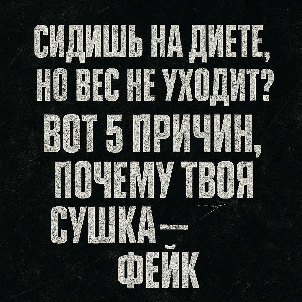 Ты жрёшь курицу и гречку. Ты не ел пиццу уже 2 недели. Ты даже начал бегать по утрам. А жир на животе — как был, так и остался. Поздравляю. Ты — типичный мученик сушки. Не спортсмен, не стратег. Просто человек, который страдает без результата. Почему? Потому что твоя сушка — не система. А самодеятельность. Блок 1. Твоя сушка не работает, потому что ты… 1. Не считаешь КБЖУ Ты «на глаз» прикидываешь — вроде мало ел. А потом — бах, 2 столовые ложки масла = +250 ккал. Сушка — это математика, а не «чувствую, что мало». 2. Пьёшь мало воды Организм не будет сливать воду, если ты её не даёшь. Итог: отёки, усталость, ноль рельефа. 2.5–3 литра — без обсуждений. Каждый день. 3. Делаешь слабое кардио Ходьба — не кардио. Прогулка по магазину — не дефицит. Хочешь сушиться — выкладывайся. Пот должен течь, пульс — лететь. 4. Срываешься и отжираешь всё обратно Один читмил — и минус неделя. Жир возвращается быстрее, чем ты думаешь. Нет самоконтроля — нет сушки. 5. Спишь по 4–5 часов Без сна у
