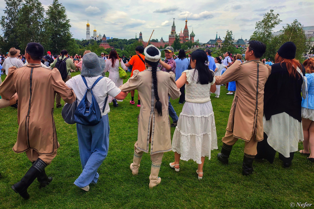 Осуохай - традиционный круговой танец якутов. Ведущий запевает и задает ритм движения, постепенно ускоряя темп. Осуохай - ключевая часть национального праздника Ысыах. Московский Ысыах в этом году прошел в парке Зарядье. Необычно выглядит осоухай на фоне Кремля :) Ысыах - главный якутский праздник, невозможно его пропустить. Вошла в метро и увидела нарядных девушек. Сразу стало ясно, что мы едем вместе. Якуты бережно относятся к своей культуре и чтят традиции. Девушки надевают платья халадай и серебряные украшения. Каждый атрибут имеет свое название: бастынга, биhилэх, илин-кэлин кэбиhэр, кылдыы. Ысыах отмечают в день летнего солнцестояния, праздник символизирует возрождение природы после долгой зимы. Торжественная церемония начинается с обряда благословения - алгыс. Шаман зажигает огонь, чтобы обратиться к высшему божеству Юрюнг Айыы Тойону. Считается, что дым и молитва прогоняют злых духов. Угощение - обязательная часть Ысыаха. Главные блюда - кумыс и жеребятина. Кумыс в Якутии счита