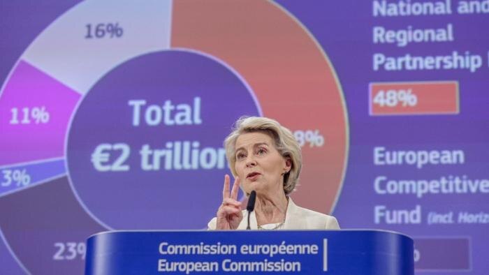 Глава Европейской комиссии Урсула фон дер Ляйен также представила свой проект очередного многолетнего бюджета Евросоюза на 2028-2034 годы, который эксперты уже назвали «несостоятельным». Согласно предложению ЕК, бюджет составит около 2 триллионов евро. Порядка 100 миллиардов евро предлагается запланировать для помощи Украине.
