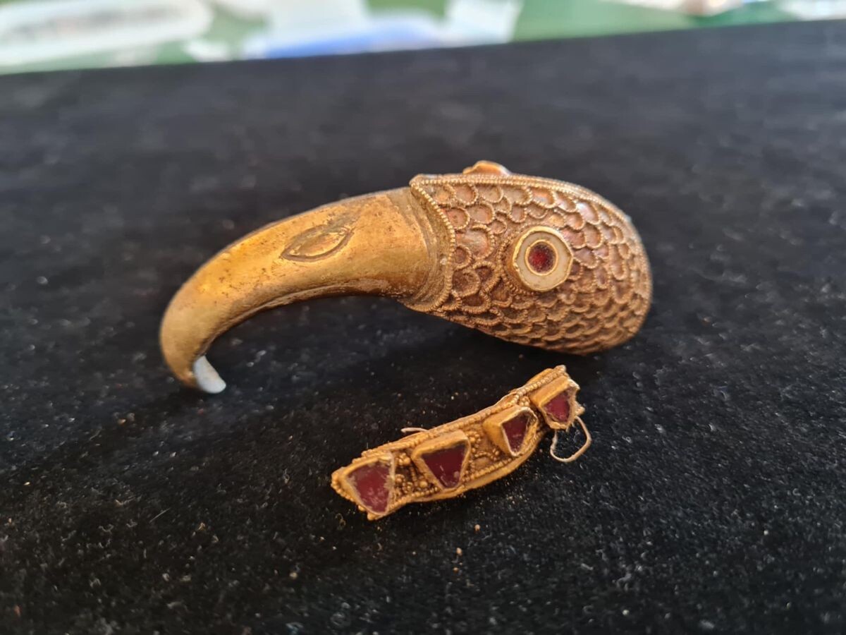 И да — шок, трепет, находка вей жизни! Из-под земли показалось золотое изделие. Позже, после бережной чистки, выяснилось, что это золотая голова ворона с инкрустацией гранатами. Более того, проверив ямку еще раз, кладоискатели заплясали от радости: там было еще золотое колечко.