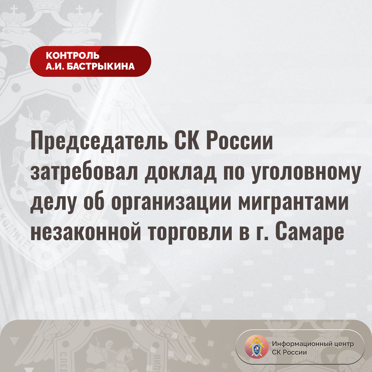 Председатель СК России затребовал доклад по уголовному делу об организации мигрантами незаконной торговли в г. Самаре