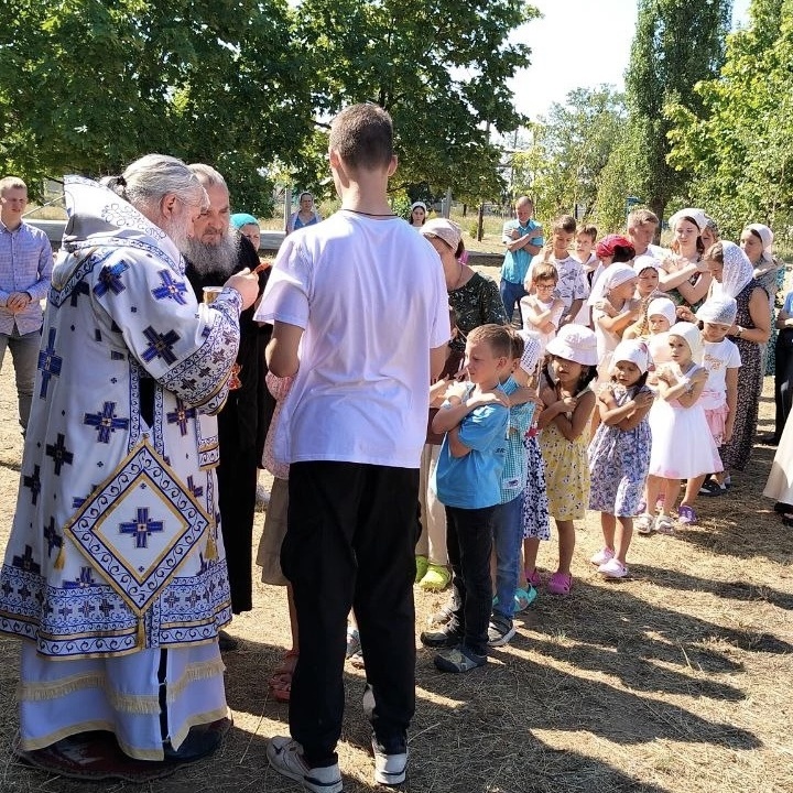 Пишу день 5, а ощущение, что мы здесь точно не меньше недели, такие насыщенные и яркие получаются дни! Вот и сегодня день начался празднично - с праздничной Божественной литургии под открытым небом. Это всегда особенное событие, а тем более когда наше семейное поселение посещает Владыка Иоанн, епископ Калачевский и Палассовский. Именно с его поддержки лагерь 3 года назад возродился здесь на новом месте, в селе Политотдельское Николаевского района, а сейчас активно ремонтируется и восстанавливается. Правда сегодня у наших детей утро не задалось: Тихон всё время капризничал - он хотел идти туда-незнаюкуда и при том не своими ножками, а на маминых руках. Так что к окончанию службы мы с мужем изрядно подустали. А прямо перед Причастием разрыдалась Параскева и я думала, что навряд ли мне удастся Причаститься. Но это всё-таки удалось. Зато за завтраком на удивление всех Владыка попросил спеть под гитару песню Непогода из кинофильма Мерри Попинс(в тему нашей смены), а потом мы спели ещё п