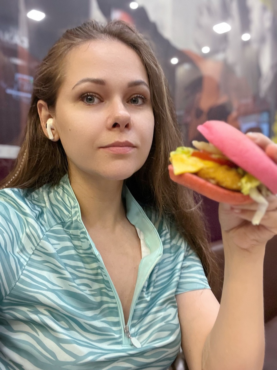 Сегодня у меня был день рождения, как и положено в этот день, я пошла в ресторан. Ну как в ресторан… во «Вкусно и точка». Вам может показаться, что это очень странный выбор, но как я могла не сходить, если с сегодняшнего дня там новый розовый бургер! Воспринимаю эту новинку, как подарок мне на день рождения! Так какой же он на вкус? Сейчас расскажу! Hello Kitty бургер Что нам обещает «Вкусно и точка»: Что на самом деле. Розовая булочка-необычно, симпатично. По вкусу не отличается от обычной. Котлетка напоминает большой наггетс. Кусочки рубленного куриного мяса в перемешку с куриным фаршем в хрустящей панировке. Дальше салат, сыр, помидорка. Ну с ними все понятно, никаких неожиданностей во вкусе. Но вот что правда необычно, так это соус. Это не такой сырный соус, который обычно мы берем к закускам. У него ярко выраженный копченый привкус и легкая остринка, как и было заявлено, но вот про кислинку никто не говорил, но она есть, имейте ввиду! В целом, если вы вы любите бургеры с курочк