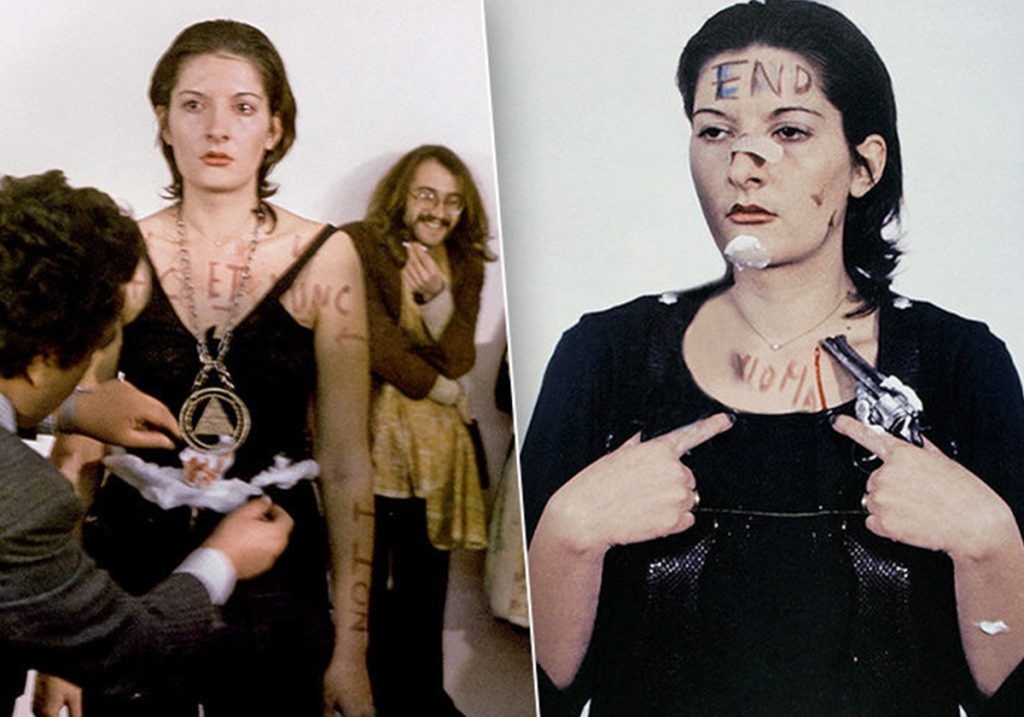 - "Ритм 0" (1974): Шок, Доверие и Опасность. На столе – 72 предмета: от роз и меда до ножа, пистолета и пули. Зрителям предлагалось делать с Абрамович все что угодно в течение 6 часов, используя эти предметы. Она взяла на себя роль пассивного объекта. Первые действия были невинны... но атмосфера быстро накалилась. Ее раздели, порезали бритвой, приставили пистолет к голове. Перформанс стал жутким исследованием темной стороны человеческой натуры, когда снимаются все социальные ограничения. Художница выдержала испытание, доказав невероятную силу духа и показав, как легко добро превращается в жестокость при вседозволенности.