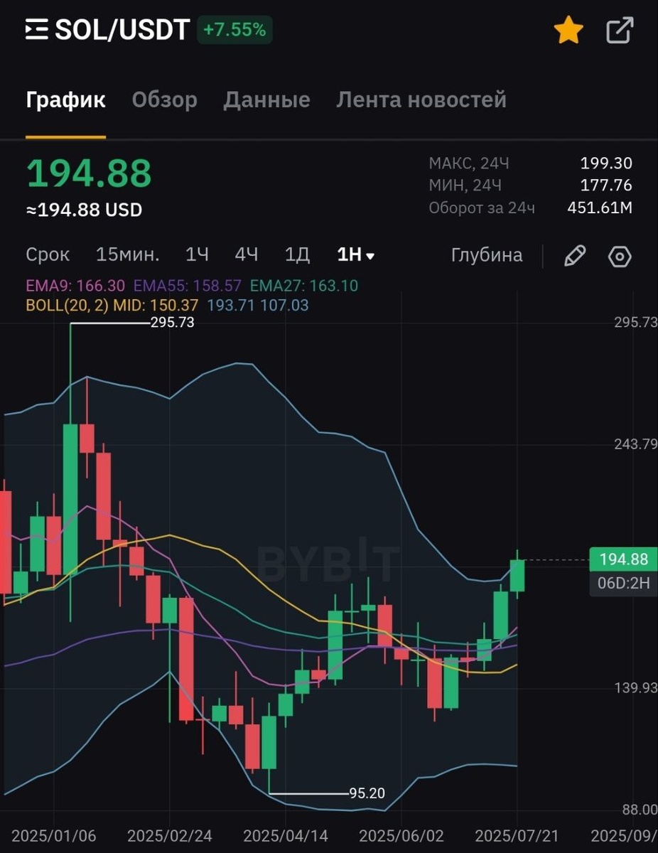 В ответ на пост 🚀 Вслед за #ETH Ethereum #SOL Solana предсказуемо выходит в 3 волну с целями минимум 276 / 366+ или +42% и +89% с текущих 📈 Может быть и даже многократно выше, посмотрим. #крипта с нами 💯