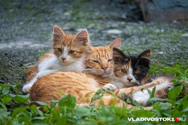 Только посмотрите на эту милую усатую семью. По словам местных, они живут в гармонии и очень дружные между собой. Мы побывали у них в гостях и убедились: пушистых товарищей и правда обхаживают всем двором. У них даже есть вода и еда.