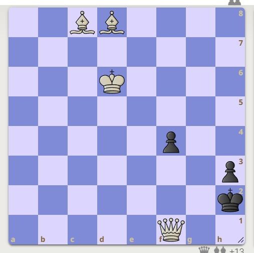 Предлагаю решить очередную шахматную задачу. Автор задачи Ю. Сушков, 1980 год. У белых два слона и ферзь, у чёрных две пешки. Белые начинают и ставят мат в 2 хода. Подписывайтесь на канал и ставьте лайки. Первый ход смотрите в галерее.