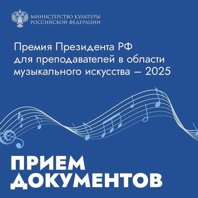 ✔️ Стартовал прием заявок на соискание премий Президента Российской Федерации для преподавателей в области музыкального искусства