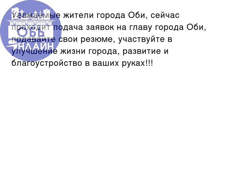 ↗ Уважаемые жители города Оби, сейчас проходит подача заявок на главу города Оби, подавайте свои резюме, участвуйте в улучшение жизни