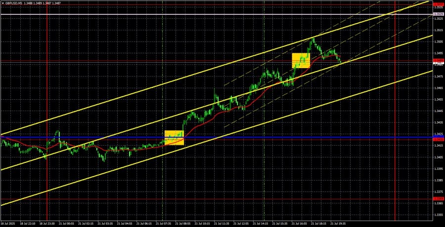 https://basechop.ru/wordpress/?p=50406 Анализ GBP/USD 5М. Валютная пара GBP/USD в течение всего понедельника также находилась в восходящем русле. Причины для этого были идентичными паре EUR/USD. Доллар три недели рос на голом энтузиазме трейдеров, которые всеми силами старались не обращать внимание на войну между Пауэллом и Трампом, а также на все новые пошлины американского президента. Мы предупреждали, что имеем дело с банальной фиксацией прибыли по лонгам, а затем с высокой долей вероятности возобновится восходящий тренд. Конечно, на валютном рынке возможно любое развитие событий, но сейчас все идет к тому, что доллар начинает новое падение в бездну. Дональд Трамп же на выходных решил помочь быкам и заявил о намерении еще немного повысить тарифы для Европейского союза. Сделка с Брюсселем и раньше находилась под большим вопросом, а теперь вероятность ее подписания стремится к мизерным значениям. Таким образом, в ближайшие недели мы ждем нового роста пары GBP/USD. Цена закрепилась…