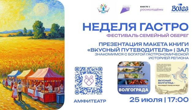 Мероприятие проведут на площадке Амфитеатра в рамках продолжающегося в Волгограде фестиваля «Семейный оберег». Как сообщили РИАЦ в Центре развития креативных индустрий «Волга», 25 июля 2025 года на встрече экспертов, авторов и всех, кто заинтересован в гастрономическом туризме, презентуют книгу «Вкусный путеводитель» по Волгограду: издание помогает разобраться в кулинарной истории региона, где сочетаются традиции донских казаков, советского общепита и современные фуд-тренды. Гости узнают о ресторанах высокой кухни и уютных городских столовых. Самым активным устроители пообещали подарить экземпляр «Вкусного путеводителя». Начало – в 17.00. Вход в левый зал Амфитеатра свободный, но необходима предварительная регистрацияпо ссылке. Знак информационной продукции производителем не присвоен.