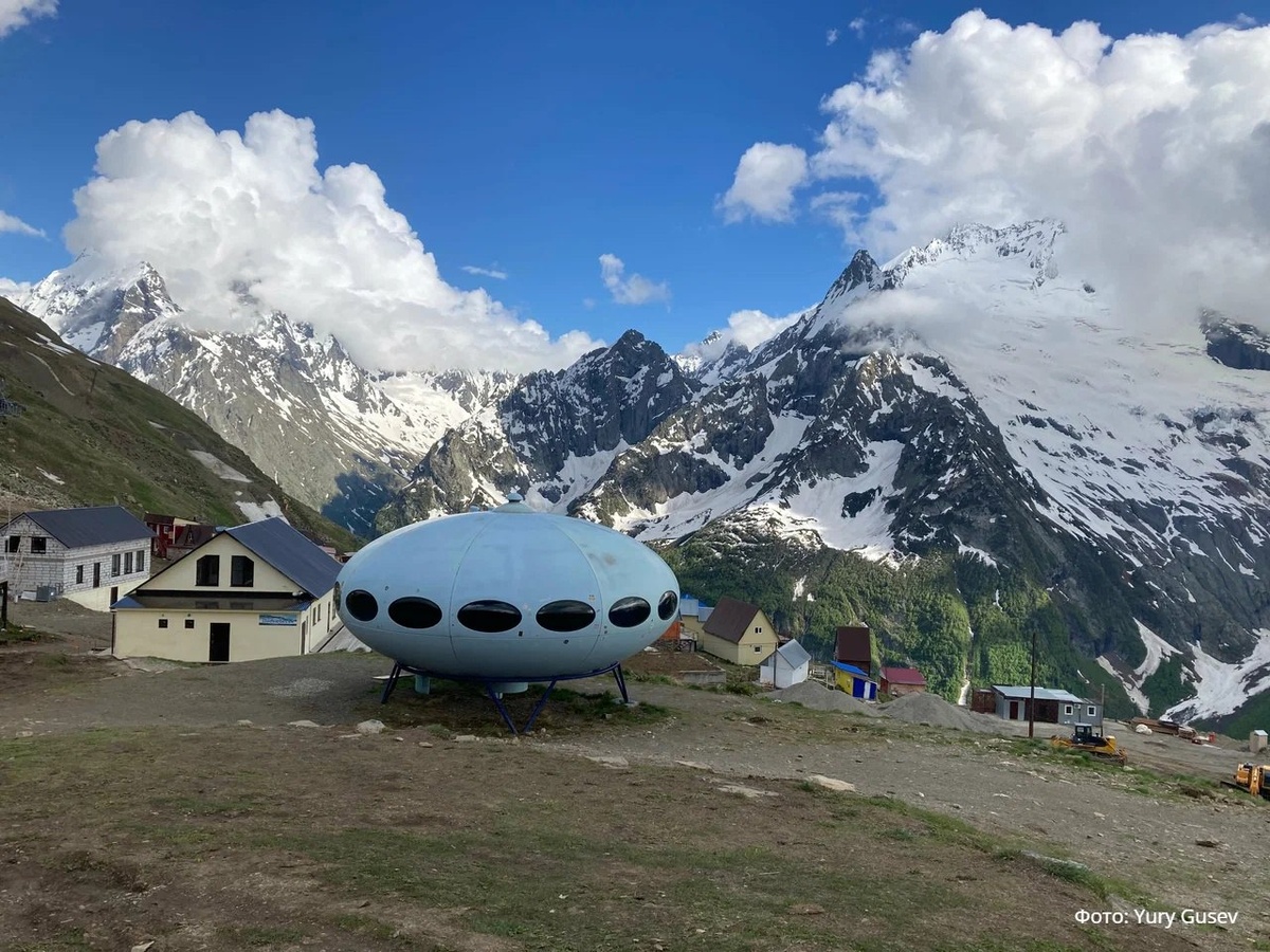 🛸Невероятная по своей оригинальности и красоте гостиница «Тарелка» в Домбае (Карачаево‑Черкесия) представляет собой один из самых запоминающихся образцов футуристической архитектуры эпохи СССР. Дизайн этого мини‑отеля, похожего на НЛО, был создан в конце 60-х годов финским архитектором Матти Сууроненом.