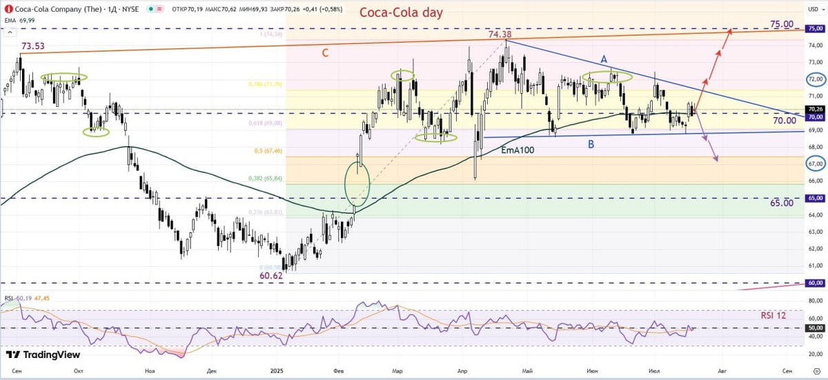 На прошлой неделе выходило большое количество важной макроэкономической статистикой, в первую очередь все ждали основные данные по инфляции. Индексы потребительских сняли неопределённость в отношении действий ФРС, как и розничные продажи, которые после 2 месяцев снижения взлетели на 0.6%. Сейчас вероятность снижения ставок в июле практически свелась к нулю. Повысили напряжённость квартальные отчёты крупных американских банков, точнее их «слабые прогнозы» на 2-е полугодие. Д.Трамп анонсировал новые тарифные меры, затрагивающие ключевых партнёров, включая Мексику, ЕС и страны, сотрудничающие с Россией в энергетической сфере, перед дедлайном 1 августа. Нервозности добавили и слухи о возможной отставке главы ФРС Дж.Пауэлла, тем не менее, американские фондовые рынки торговались всю неделю в узких диапазонах около максимальных значений, а индексы S&P 500 и Nasdaq обновили high. Отметим, что поддержку технологическому сектору оказала информация о возможной отмене запрета на поставки ИИ-ускори