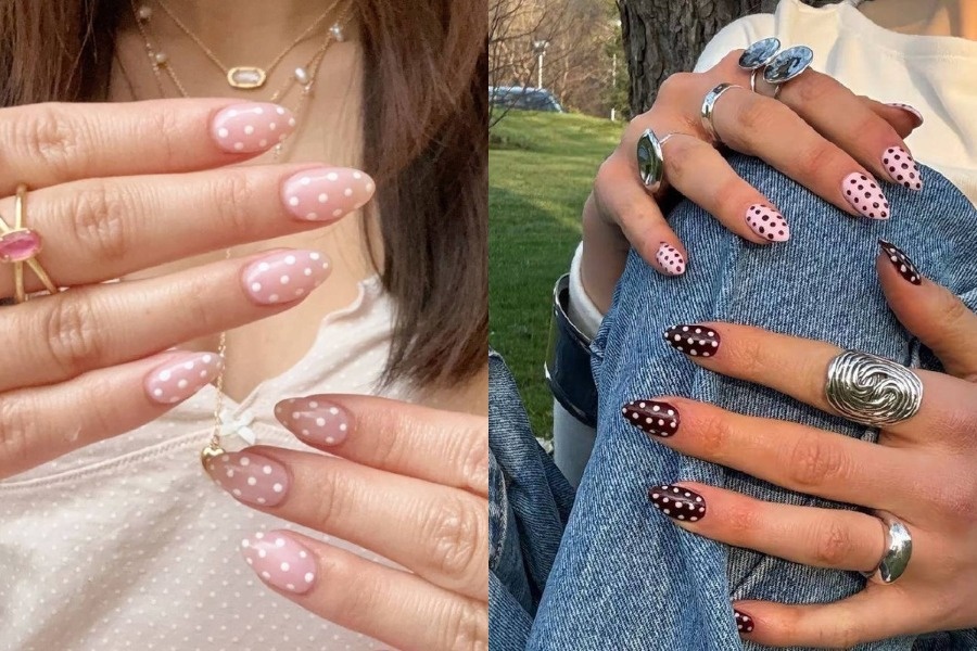 Polka dots nails, или ногти в горошек — один из самых популярных принтов в маникюре этим летом. Как и в случае с модной индустрией, в nail-индустрии горох активно завоевывал свои позиции на протяжении всего года. Рассказываем, как тренд распространялся и какие дизайны можно сделать.