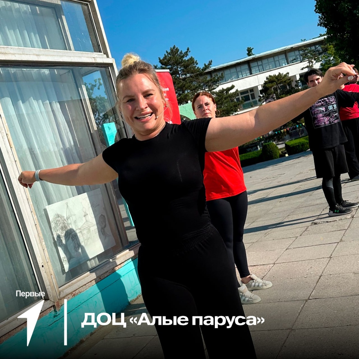 На 3-й смене «Время Первых: Атаманы нового поколения» в ДОЦ «Алые паруса» прошла бодрая утренняя зарядка с министром спорта Республики Крым — Ольгой Александровной Торубаровой! 💪