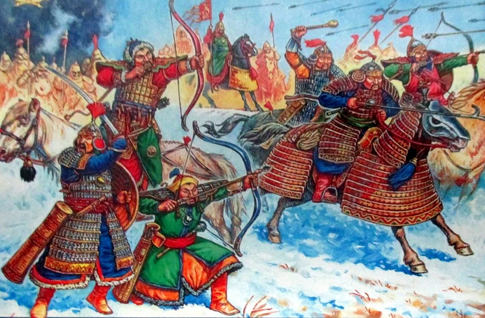 Давайте посмотрим, какой же была армия монголов. Примечательно, но определенной цифры количественного ее состава нет. Историки называют цифры от 50 тысяч до 400 тысяч всадников. Например, Карамзин говорит о 300 тысячной армии Батыя. Давайте, рассмотрим обеспечение армии на примере этой цифры. Как известно монголы всегда отправлялись в военные походы с тремя лошадьми: ездовая (на ней передвигался всадник), вьючная (перевозила личные вещи и оружие всадника) и боевая (шла пустой, чтобы в любой момент могла свежей вступить в бой). То есть 300 тысяч человек это 900 тысяч лошадей. К этому добавьте лошадей, которые перевозили таранные орудия (доподлинно известно, то орудия монголы привозили собранными), лошадей, которые везли питание для армии, везли дополнительное оружие и т.д. Получается, по самым скромным оценкам, 1,1 миллиона лошадей! А теперь представьте, как заснеженной зимой (в эпоху малого ледникового периода) прокормить в чужой стране такое стадо? Ответа нет, поскольку этого сделать невозможно.