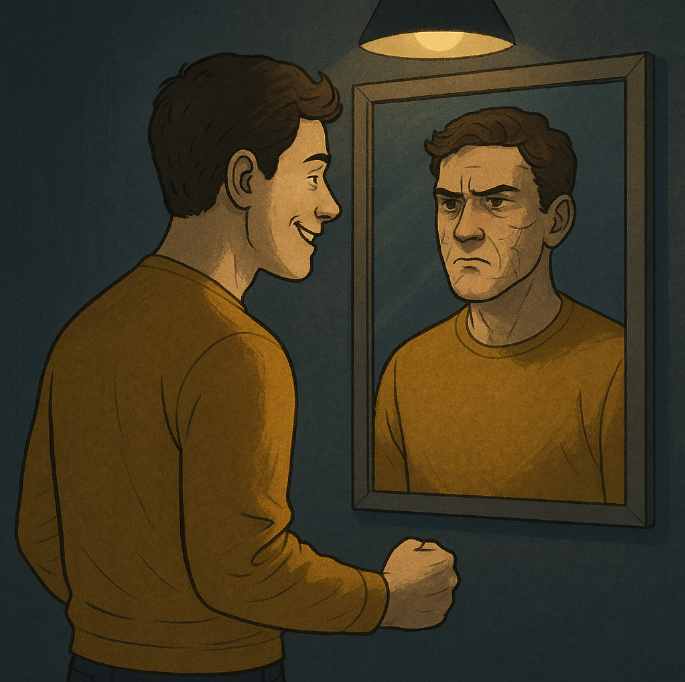 Так и появляется эта странная улыбка, под которой живёт злость. Что происходит дальше? Взрослый человек