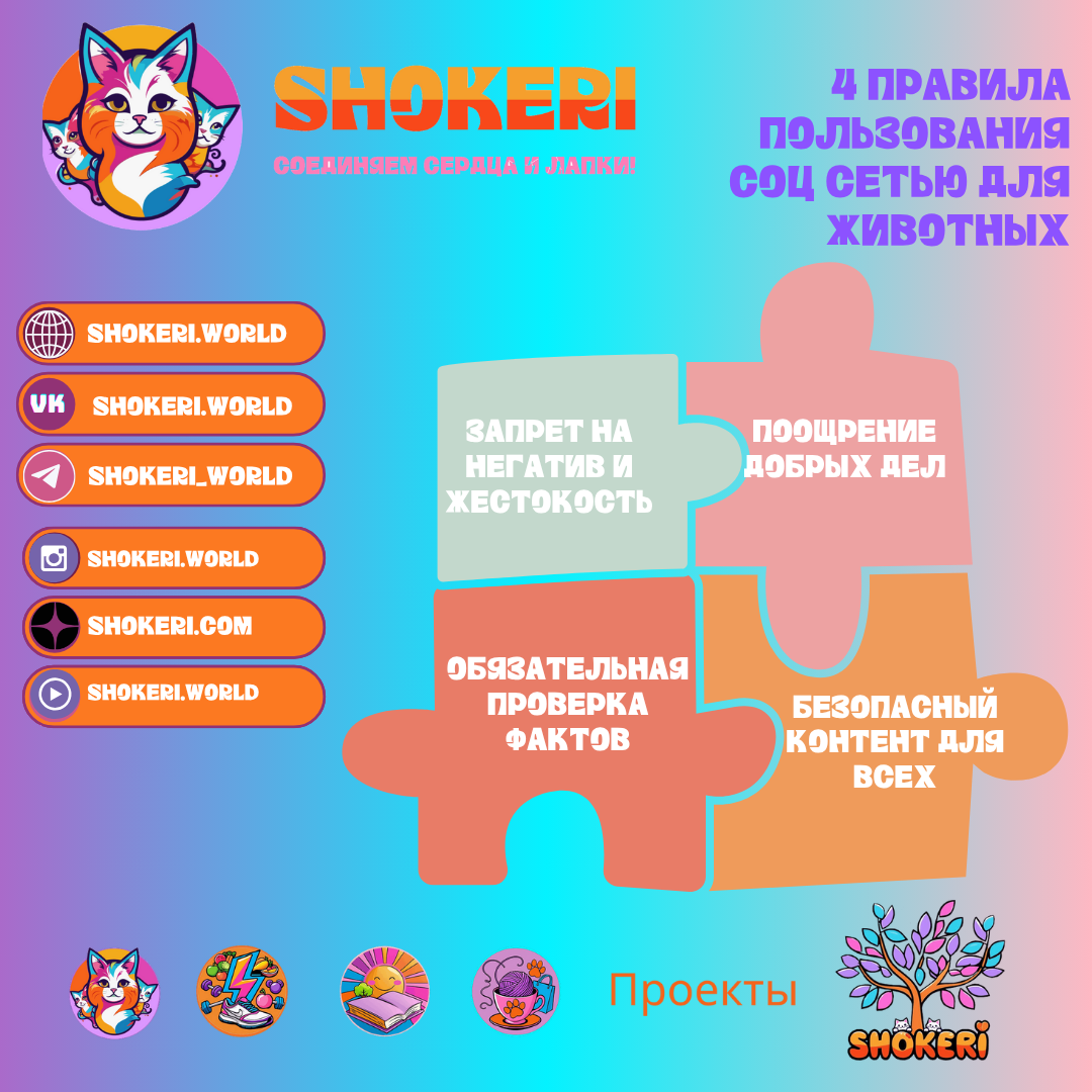 Просто дать им самый милый и позитивный контент. А что может быть милее котиков, щенят и птичек? Вот 4 правила, которые помогут сделать социальную сеть для животных самой доброй в мире: 🐾Запрет на негатив и жестокость – никаких оскорблений, троллинга или контента, демонстрирующего жестокое обращение с животными. Только позитив, поддержка и забота! 🐾Обязательная проверка фактов – перед публикацией информации о помощи животным (например, сбора средств или поиска хозяев) требуется подтверждение от модераторов или доверенных организаций. 🐾Поощрение добрых дел – система рейтинга и наград для пользователей, которые помогают животным (например, волонтёрство, донаты, истории успеха). 🐾Безопасный контент для всех – запрет на рекламу сомнительных зоомагазинов, разводов и любых материалов, которые могут навредить животным или их хозяевам. Если соблюдать эти правила, мы уверены, что соцсеть Shokeri станет по-настоящему тёплым и добрым местом! 🐾💛