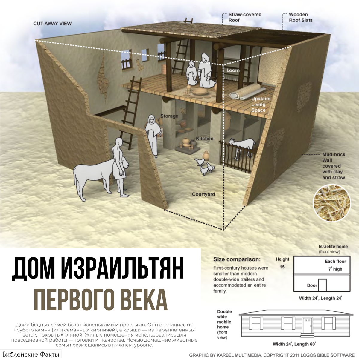 На изображении представлена модель дома израильтян в I веке н.э. (времён Иисуса).