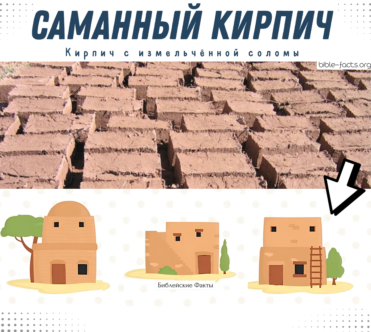 В библейские времена саманный кирпич был широко распространён, особенно в регионах с нехваткой камня и древесины - таких как Египет, Месопотамия и Израиль.