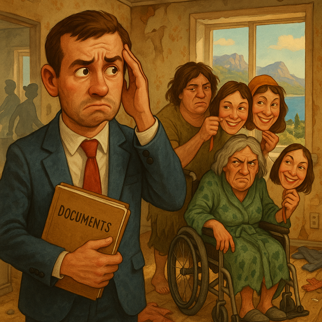В моей риелторской практике на полуострове было немало курьезных случаев, но один особенно запомнился. Пару лет назад ко мне обратился молодой человек с просьбой продать комнату в двухкомнатной квартире где-то в районе Симферополя. Сам он там не жил — переехал в Ялту по работе — но очень хотел избавиться от крымской недвижимости. Вторая комната принадлежала женщине лет пятидесяти, которая проживала там с престарелой матерью. Когда я связался с ними, чтобы обсудить детали продажи, энтузиазма они не проявили. И я их понимал: продажа долей в квартире — дело хлопотное. Покупателей интересует не столько метраж и состояние жилья, сколько то, с кем придется делить кухню и санузел. Как опытный риелтор, я решил сначала познакомиться с будущими соседями покупателя. На пороге меня встретили две приятные, опрятно одетые женщины. Старшая, видимо, мать, была в элегантном платке, младшая — в аккуратной блузке. Обе производили впечатление интеллигентных, воспитанных людей. — Молодой человек, — сказала