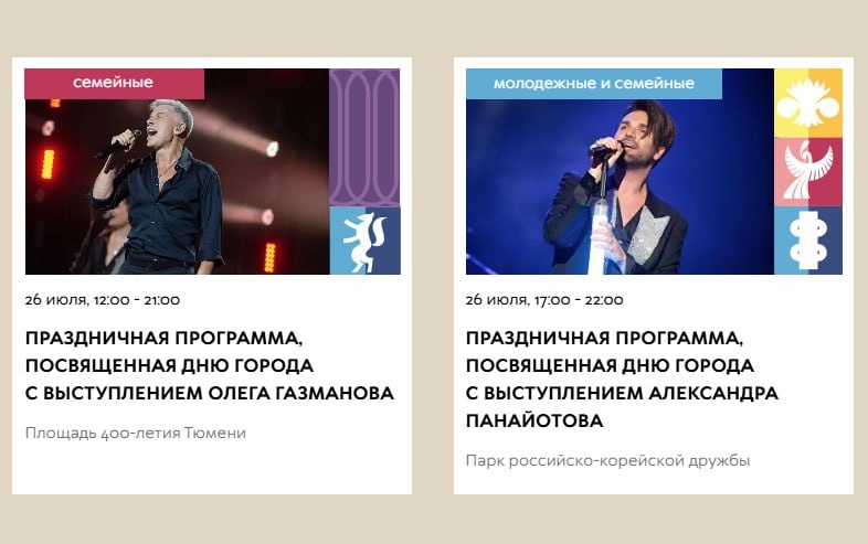 Вниманию журналистов: аккредитация на хедлайнеров Дня города! В День города, 26 июля, в Тюмени выступят два хедлайнера: - Олег Газманов в 20 часов на площади 400-летия Тюмени; - Александр Панайотов в 21 час в парке Дружбы между Россией и Республикой Кореей (ул. Т. Кармацких). Просим СМИ аккредитовать журналистов (не больше двух человек от каждого СМИ) до 18 часов 22 июля по телефону 51-07-27.