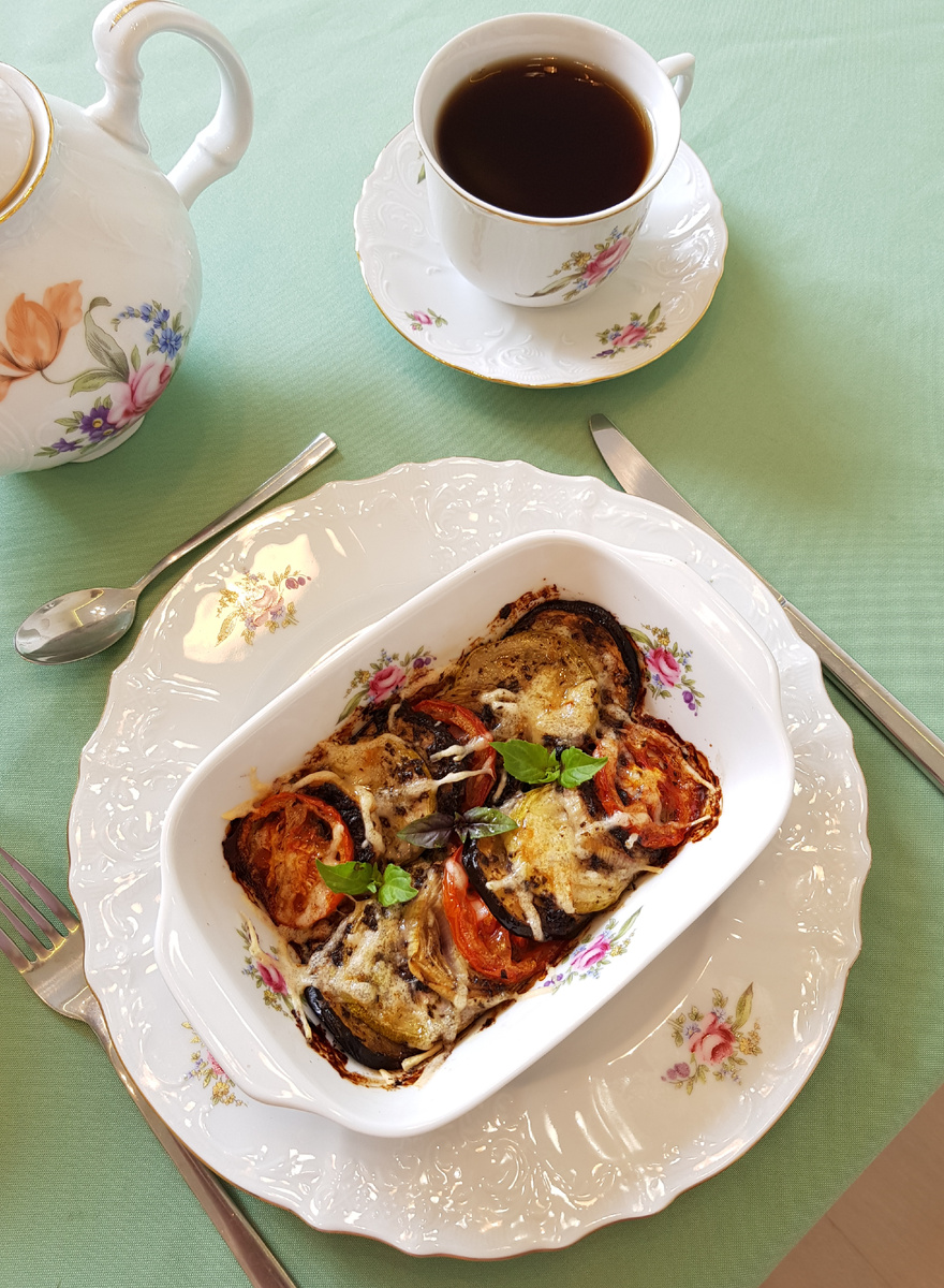 Добрый день, дорогие друзья! Сегодня я представляю вашему вниманию летнее блюдо родом из Прованса, которое можно приготовить на любой кухне из сезонных овощей. Для приготовления нам понадобятся: 400 грамм баклажанов, 400 грамм кабачков, 400 грамм лука-шалота, 400 грамм помидоров, 90 грамм сыра, 120 грамм оливкового масла, 40 грамм виноградного уксуса, 1,5 чайной ложки соли, 1,5 чайной ложки приправы «Прованские травы», 4 зубчика чеснока, 50 грамм свежего базилика. Приготовление: листья базилика оборвать со стеблей, промыть, просушить. В чашу измельчителя сложить листья базилика, чеснок, соль, приправы, уксус, оливковое масло. Измельчить маринад до однородной массы. За счет того, что в составе маринада присутствуют листья базилика, он будет лучше держаться на овощах и придаст им свой аромат. Нарезать толщиной 5 миллиметров лук. Нарезать кружками толщиной 5 миллиметров кабачки. Нарезать кружками толщиной 5 миллиметров кабачки. Нарезать кружками толщиной 5 миллиметров помидоры. Обмазать
