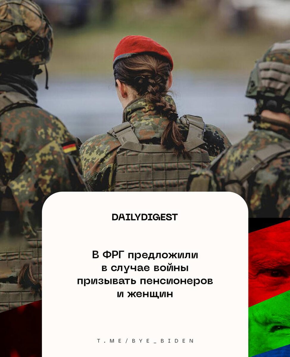 ☑️Главные новости на утро 22 июля: 🔹В ФРГ предложили в случае войны призывать пенсионеров и женщин. 🔹США готовы снова нанести удары по ядерным объектам Ирана, «если это будет необходимо», заявил Трамп. 🔹Иран пока не готов к прямым переговорам с США, заявил глава МИД. 🔹Советник офиса премьера Израиля назвал вредным и несправедливым заявление 25 стран о необходимости прекратить огонь в Газе. 🔹Трамп хочет выйти из украинского кризиса, несмотря на поставки Patriot — бывший помощник президента США по нацбезопасности Болтон. 🔹Режим Зеленского в попытках удержать власть ломает последние независимые структуры — депутат Госдумы Шеремет. 🔹Украина может стать для Трампа тем же, чем Афганистан был для Байдена — Bloomberg. UPD. Палата представителей конгресса США отложила до сентября голосование по резолюции, рекомендующей обнародовать документы по делу Эпштейна, сообщает CNN. 👍 БайБайден. Подписаться