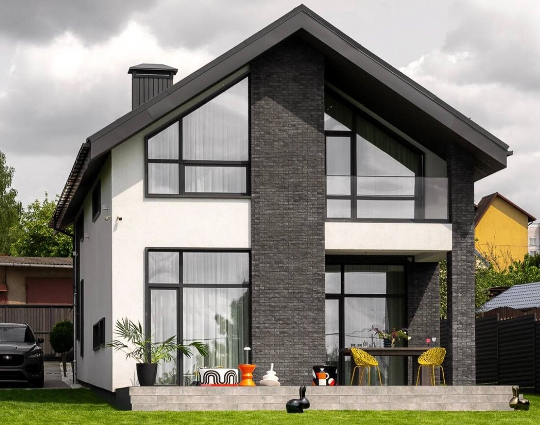 Архитектор очень тонко уловил его пожелания и предложил проект дома, который будет актуальным на долгие годы, а не просто капризом моды. Дмитрий признается, что был большой соблазн заказать проект с плоской кровлей, но нужно было учитывать контекст места, чтобы не выглядеть в сложившейся застройке белой вороной. Поэтому на участке мы видим двухэтажный дом с классической двухскатной крышей.