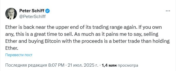 Эфир снова вернулся к верхней границе своего торгового диапазона. Если он у вас есть — сейчас отличный момент для продажи. Как бы мне ни было горько это признавать, продажа эфира и покупка биткоина на вырученные средства — более выгодная сделка, чем держать эфир.