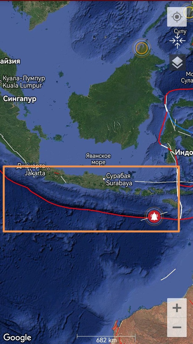 Появились трассеры вдоль рифтовой зоны по югу Индонезии (Суматра-Ява-Бали и отдельно у Сумбавы). По длинному ОСТИ возможно сейсмическое событие до М7+, по короткому М5-6. Срок: до 9 дней. ===== Cloud tracers appeared along the rift zone in southern Indonesia (Sumatra-Java-Bali and separately near Sumbawa). A seismic event up to M7+ is possible along the long tracer, and up to M5-6 along the short tracer. Duration: up to 9 days.