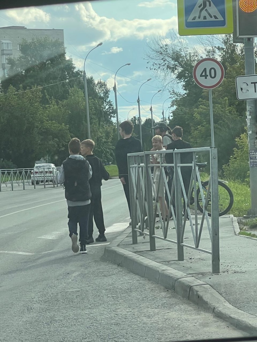 ОПАСНО ДЛЯ ЖИЗНИ! Нам пишут: "Вчера, 21 июля, в районе 18.00, эти мальчишки сидели на остановке и матерились, но это ещё полбеды. Они встали и пошли через дорогу, причём не по тротуару, а прямо по проезжей части (это частично видно на фото). В этот момент мимо проезжал велосипедист, и они начали замахиваться на него ветками. Водители сигналили им, пытаясь предупредить об опасности, но они, не обращали на это никакого внимания. Уважаемые родители! Проведите, пожалуйста, беседу со своими детьми, ведь такое поведение на дороге опасно для жизни!"