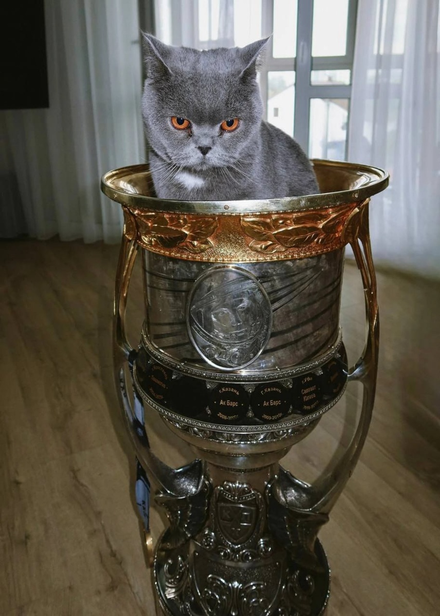 🔥🇷🇺 Георгий Иванов опубликовал фото своего кота с Кубком Гагарина