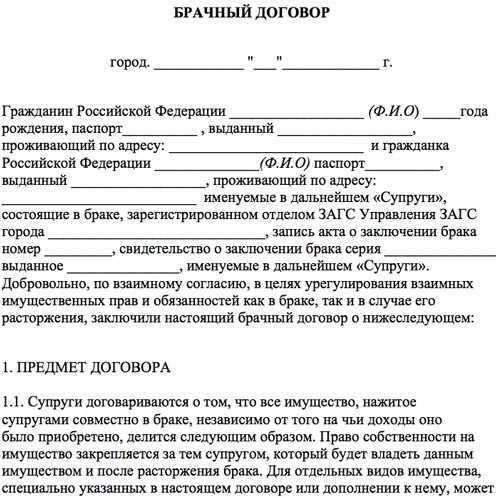 - Проект брачного договора.