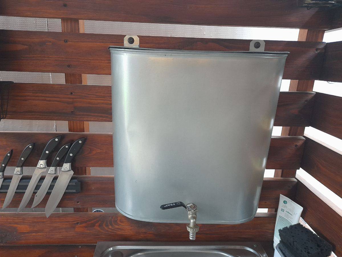 Воду на летнюю кухню мы приносим в ведрах. Заливаем ее в рукомойник и используем для мытья посуды. С канализацией вопрос решили как только вырыли выгребную яму. А с водой было сложнее. Самотеком из бочки в кран она не поднимется. Сейчас у нас установлена насосная станция и муж предложил провести воду и в зону приготовления пищи. У станции врезал тройник, впаял отдельный кран. Провел трубу по стене дома. Она уйдет под обшивку. Кран ставить не стали. Вода у нас с мая по октябрь. Бывает, что из-за ремонтных работ график подачи воды меняется. С конца августа мы переезжаем в квартиру и регулярно набирать воду в бочки не можем. Да и в бочке вода просто может закончится и придется выбирать какие нужны у нас в приоритете. Постирать ли нам лучше, либо помыться. Нам важно сохранить возможность заниматься хозяйством без привязки к водопроводу. Поэтому оставили рукомойник. В нем сделали отверстие. Далее такое же отверстие сделали в деревянной стенке кухни. Со стороны стены в рукомойник вставили т