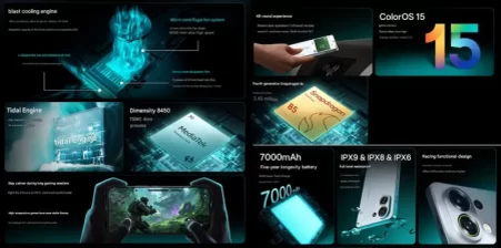 OPPO K13 Turbo Pro — это игровой смартфон среднего ценового сегмента, представленный в Китае 21 июля 2025 года. Устройство выделяется уникальной системой активного охлаждения с встроенным вентилятором, мощным процессором Snapdragon 8s Gen 4, большим аккумулятором на 7000 мАч и водозащитой с рейтингом IPX6/IPX8/IPX9. Этот обзор подробно рассматривает ключевые характеристики, производительность, дизайн, камеры, программное обеспечение и общее впечатление от устройства, основываясь на доступной информации.