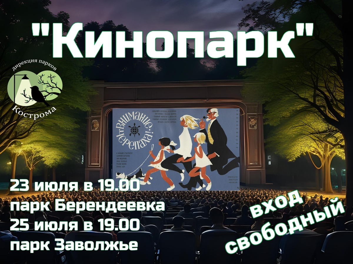 Кинопоказ состоится в «Берендеевке» и «Заволжье» На этой неделе в костромских парках «Берендеевка» и «Заволжье» состоится показ советского фильма «Внимание, черепаха!» режиссера Ролана Быкова. Творческий деятель известен своими детскими фильмами «Про Красную Шапочку», «Приключения Али-Бабы и сорока разбойников» и «Приключения Буратино». Интересный факт: в своей экранизации сказки про деревянного мальчика Ролан Антонович сыграл харизматичного кота Базилио в дуэте со своей второй женой Еленой Санаевой в роли лисы Алисы. Кинокартина про черепаху рассказывает историю о двух друзьях, которые решили выкрасть рептилию из живого уголка. Мальчики хотят провести эксперимент — подложить земноводную под танк. Допустить этого не может одноклассница приятелей Таня, девочка привлекает к спасению черепашки и детей, и взрослых. В Тереме Берендея показ состоится 23-го июля, в Заволжском парке — 25-го июля. Оба сеанса начинаются в 19 часов. Вход свободный.