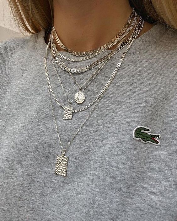 В один момент этот летний тренд был прямо на пике популярности, но сейчас он сошел на нет, и многослойные украшения смотрятся уже не так актуально, как раньше. Сейчас в моде минимализм, то есть одно небольшое эстетичное украшение.