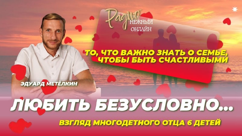 👹👺🤡💩 ➡️ 15:00 - 15:30 Любить безусловно... Взгляд многодетного отца 6 детей ©️ Эдуард Метёлкин - профессор РАМН с опытом > 20 лет, автор методики природной естественной терапии подключиться к эфиру https://dzen.ru/id/66bc872946de4626b8b5efd4 👉 комментарии пишем здесь !