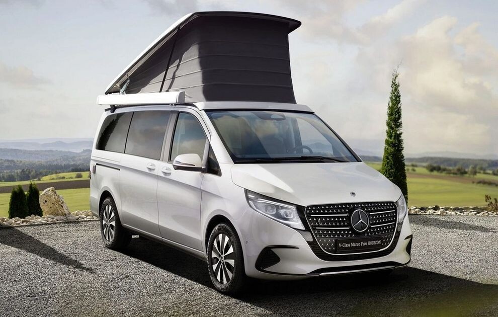 Немецкий концерн Mercedes-Benz анонсировал обновлённую версию кемпера Marco Polo Horizon, созданную на базе минивэна V-класса. Премьера состоится в августе 2025 года на международной выставке Caravan Salon в Дюссельдорфе – крупнейшем европейском мероприятии, посвящённом кемперам и караванингу. Несмотря на компактные габариты, модель получит полноценное кемперное оснащение и модернизированный интерьер, сохранив при этом преимущества базового фургона. Дизайн и интерьер За основу взят обновлённый V-класс с фирменной решёткой радиатора Panamericana, которая в топовых комплектациях будет дополнена LED-подсветкой. В салоне установят цифровую панель приборов и медиасистему MBUX с двумя 12,3-дюймовыми экранами, а также многоцветную фоновую подсветку с 64 оттенками. Материалы отделки обещают быть более практичными, но сохранят премиальное качество. Технические особенности Силовая гамма пока окончательно не определена, но вероятно кемпер унаследует дизельный двигатель OM654 объёмом 2.0 литра (23