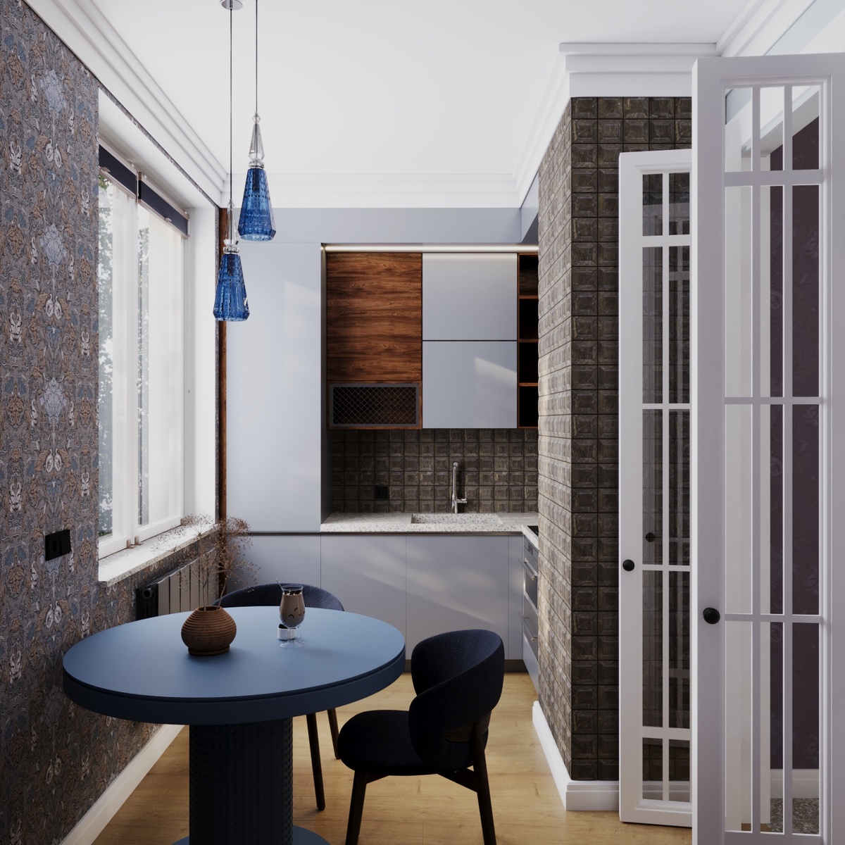 Очень просто, сделать их любимыми). Действительно надо их полюбить и привести пространство в гармонию, сделав этот цвет выигрышным. Например, в оформлении кухни меня отталкивают некоторые цветовые сочетания: оттенки желтого в отделке и кухонная мебелью в цвете «вишня», «темный или светлый орех, «венге». Все это кажется мне настолько просто для восприятия, я бы сказала губительно для глаз, потому что полностью убивает фантазию, делает мир плоским и примитивным, а собственный дом казенным. За всю свою практику, я реализовала немного кухонь в темном цвете, а именно в цвете «венге». Первое, что я сделала-это смягчила и сбалансировала пространство при помощи покраски стен в холодный серо-бежевый цвет, тем самым изменила цветовое восприятие. В одном из проектов однокомнатной квартиры, над которым я работала, в доме серии п-44т, кухня небольшая, всего 7,8 кв. м. В дополнении к небольшому размеру самой кухни-вентиляционный короб, который выпирал и еще больше уменьшал пространство. Так вот, чт