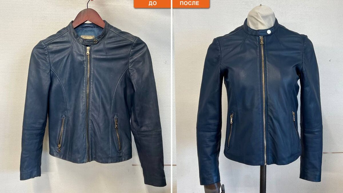 Реставрация куртки Куртка выполнена из очень мягкой натуральной кожи, требующей особого внимания. Использование жестких методов восстановления может лишить её главного преимущества — тактильной нежности. Поэтому мы применяем нашу специализированную краску Elegant Colourant, предназначенную для мягкой и галантерейной кожи. В нашей мастерской мы готовы взяться за проекты любой сложности: от локальной реставрации до полной перекраски в выбранный вами цвет. Мы всегда учитываем текущее состояние кожи и возможности её восстановления. Если ваши пожелания не соответствуют реальному состоянию материала, мы предложим оптимальное решение. Этапы работы: 1. Детальная консультация. Тщательно изучаем состояние кожи, проверяем работу молний, отмечаем все проблемные зоны. 2. Подбор цвета. Точный подбор краски, соответствующей оригинальному синему оттенку куртки. 3. Деликатная чистка кожи. Используем Leather Ultimate Cleaner для бережного и глубокого очищения без повреждения структуры кожи. 4. М