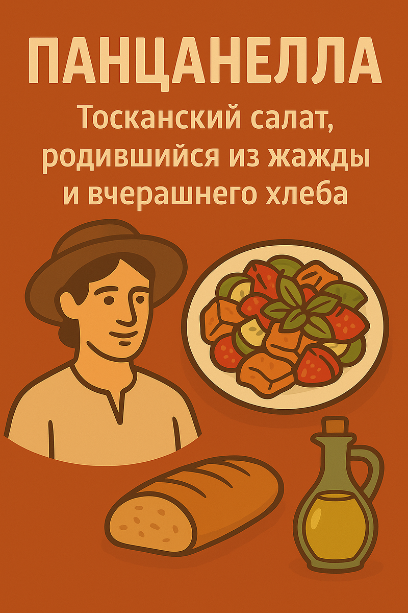 Этот салат не просто про еду — он про подход к жизни: ничего не выбрасывать, всему найти место, даже воде. Спросите у десяти итальянцев, как готовить панцанеллу, — получите десять разных ответов. Одни скажут: «Только с луком и огурцами!», другие добавят каперсы, анчоусы или базилик. Но главное в ней — вчерашний, черствый хлеб, впитавший воду и соки овощей. Традиционная панцанелла делается из: Иногда добавляют каперсы, маслины, чеснок — но база остаётся неизменной: вчерашний хлеб и сезонные овощи. Самое важное — хлеб должен быть именно черствым: мягкий не даст нужной текстуры. Истоки панцанеллы уходят в Средневековье, когда в тосканских д
