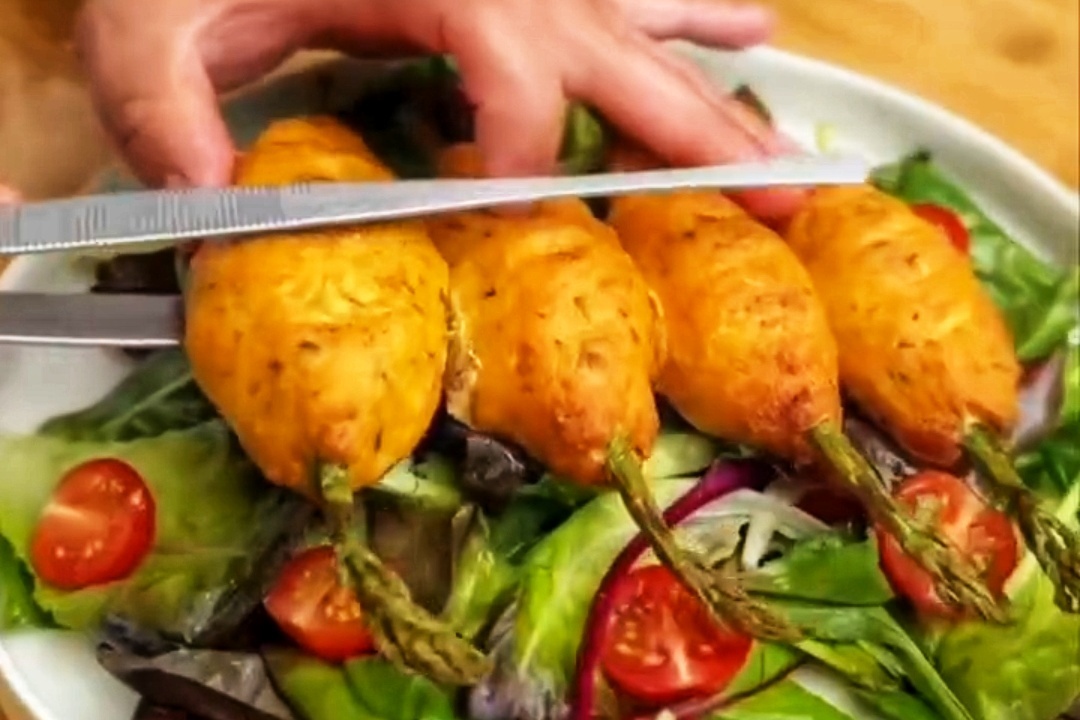 Люля-кебаб из лосося на спаржевом «шампуре» – элегантно и вкусно