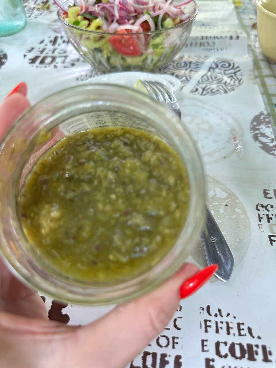 Одни деликатесы 🤤 у родителей это очень вкусно : ткемали из крыжовника, закуска из свежего кабачка