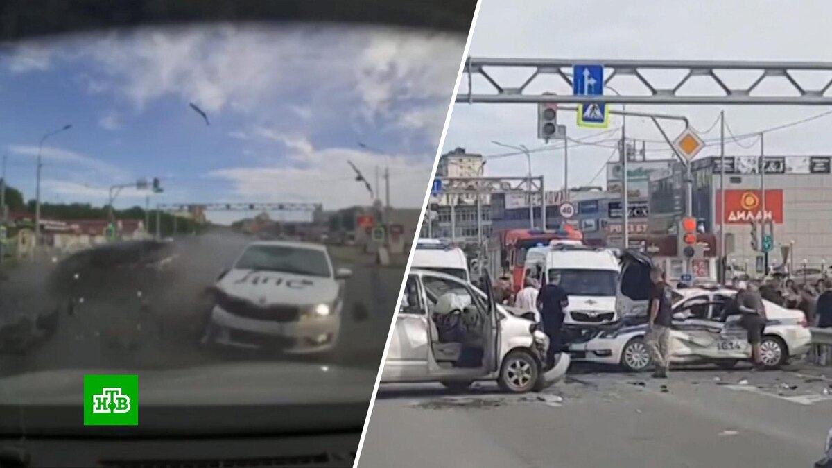 [ Смотреть видео на сайте НТВ ] Погоня за нарушителем закончилась масштабным ДТП в Приморье. Сотрудники ДПС преследовали нарушителя, но некоторые автомобилисты не пропустили машину с включенными спецсигналами. Пострадали не только инспекторы, но и другие участники дорожного движения. Эта авария попала на камеры сразу нескольких видеорегистраторов и быстро стала самой обсуждаемой в социальных сетях. Все происходившее зафиксировали сотрудники Госавтоинспекции. На первых секундах записи видно, как стражи порядка спокойно едут по дороге, потом замечают подозрительный микроавтобус, который движется с явным превышением скорости. Полицейские немедленно разворачиваются и начинают погоню, включив мигалки и сирену. Но не все поспешили уступить дорогу. Итог — массовое ДТП. На одной из записей неравнодушные люди подбегают к машине сотрудников ГАИ, выламывают заклинившую дверь и пытаются помочь им выйти. Водитель в погонах подает признаки жизни, но находится в состоянии аффекта. Неподалеку стоит то
