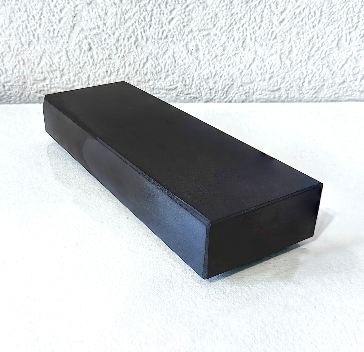 Для финиша бритв важно, чтобы камень был притерт в зеркало, и как результат, он приобретает темный оттенок, близкий к черному. Чтобы добиться этого результата, я долго выглаживал его ножом. Специально, не использовал Luxor и масло, чтобы получить чистый камень (без масляной пленки и частичек Luxor в связке).